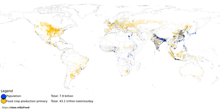• Important because this particular optimization is not the norm(...)( there are probably a whole lot of economic reasons why ), according to the data(...)( Some of the foods that are abundant in the #Imagined scenario, actually have quite low "world-average" yields currently (see /chart, row "World"). This means the crops are "grown in the wrong places", in a way. ). Doing the vegetable-powder idea with today's configuration of who-grows-what-where would actually make the whole feeding-the-world-situation worse, not better. (...)( Sorry for the awkward phrasing - I'm not sure if better terminology even exists. )